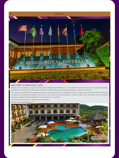 Ridge Royal Hotel is on the top of the list of Travel & Local category apps on Google Playstore. It has got really good rating points and reviews. Currently, Ridge Royal Hotel for Windows has got over 10+ App installations and 0 star average user aggregate rating points.