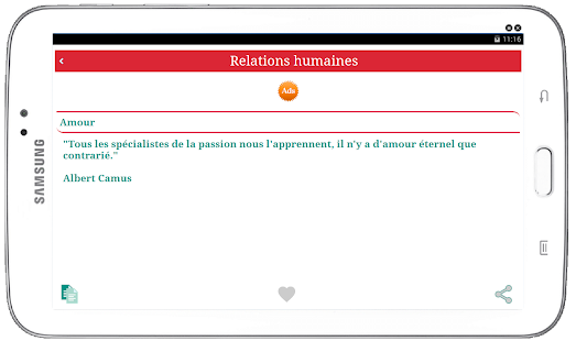 Citation relation humaine is on the top of the list of Entertainment category apps on Google Playstore. It has got really good rating points and reviews. Currently, Citation relation humaine for Windows has got over 100+ App installations and 0 star average user aggregate rating points.