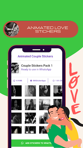 Animated Love couple stickers is on the top of the list of Social category apps on Google Playstore. It has got really good rating points and reviews. Currently, Animated Love couple stickers for Windows has got over 100+ App installations and 0 star average user aggregate rating points.