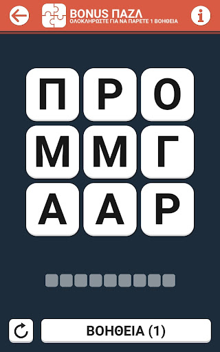 Παιχνίδι λέξεων is on the top of the list of Word category apps on Google Playstore. It has got really good rating points and reviews. Currently, Παιχνίδι λέξεων for Windows has got over 500+ Game installations and 0 star average user aggregate rating points.
