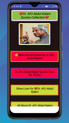 Abdul Kalam Quotes is on the top of the list of Education category apps on Google Playstore. It has got really good rating points and reviews. Currently, Abdul Kalam Quotes for Windows has got over 10+ App installations and 0 star average user aggregate rating points.