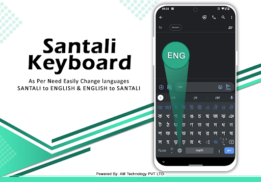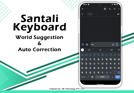 - Step 3: Now search for Santali English Keyboard App on Google playstore. Find the official App from AM Technologies Pvt Ltd developer and click on the Install button.