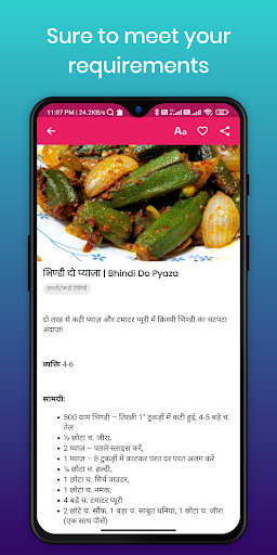 Hindi Recipe : Indian recipes is on the top of the list of Food & Drink category apps on Google Playstore. It has got really good rating points and reviews. Currently, Hindi Recipe : Indian recipes for Windows has got over 50+ App installations and 0 star average user aggregate rating points.