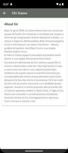 Chiesa Agape is on the top of the list of Lifestyle category apps on Google Playstore. It has got really good rating points and reviews. Currently, Chiesa Agape for Windows has got over 0+ App installations and 0 star average user aggregate rating points.