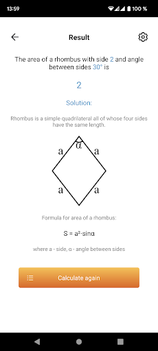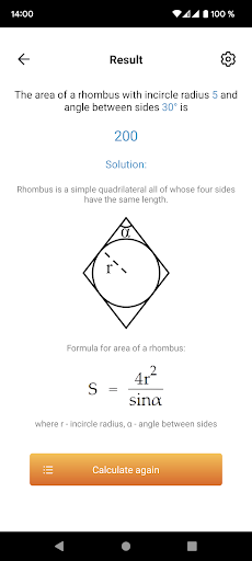 Area of a rhombus is on the top of the list of Education category apps on Google Playstore. It has got really good rating points and reviews. Currently, Area of a rhombus for Windows has got over 50+ App installations and 0 star average user aggregate rating points.