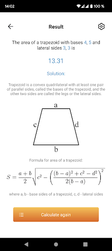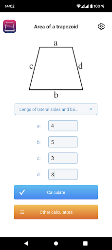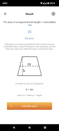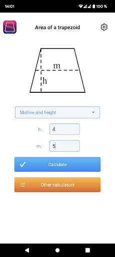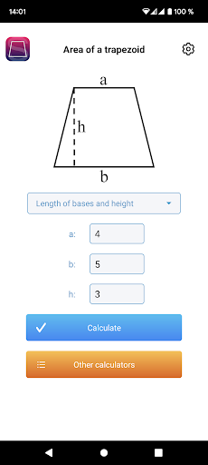 Area of a trapezoid is on the top of the list of Education category apps on Google Playstore. It has got really good rating points and reviews. Currently, Area of a trapezoid for Windows has got over 500+ App installations and 0 star average user aggregate rating points.