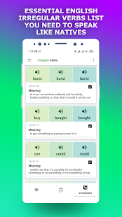 English Irregular Verbs. Vocabulary Builder App has got enormous popularity with it’s simple yet effective interface. We have listed down two of the best methods to Install English Irregular Verbs. Vocabulary Builder App on PC Windows laptop. Both the mentioned emulators are popular to use Apps on PC. You can follow any of these methods to get English Irregular Verbs. Vocabulary Builder App for Windows 10 PC.