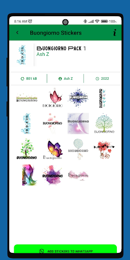 - Step 3: Now search for Buongiorno Stickers WhaSticker App on Google playstore. Find the official App from Ash Z Appdev developer and click on the Install button.