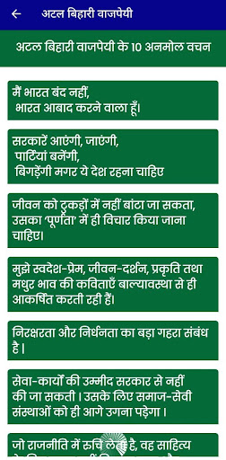 अटल बिहारी वाजपेयी:Atal Bihari is on the top of the list of Books & Reference category apps on Google Playstore. It has got really good rating points and reviews. Currently, अटल बिहारी वाजपेयी:Atal Bihari for Windows has got over 5+ App installations and 0 star average user aggregate rating points.