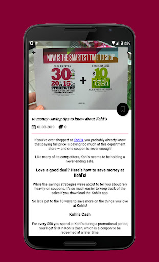 CashTips- Kohls Tips & coupons is on the top of the list of Shopping category apps on Google Playstore. It has got really good rating points and reviews. Currently, CashTips- Kohls Tips & coupons for Windows has got over 10+ App installations and 0 star average user aggregate rating points.
