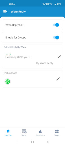 Wato Reply - Auto Responder is on the top of the list of Tools category apps on Google Playstore. It has got really good rating points and reviews. Currently, Wato Reply - Auto Responder for Windows has got over 1,000+ App installations and 0 star average user aggregate rating points.