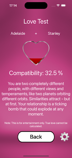 Love Test is on the top of the list of Entertainment category apps on Google Playstore. It has got really good rating points and reviews. Currently, Love Test for Windows has got over 1,000+ App installations and 0 star average user aggregate rating points.
