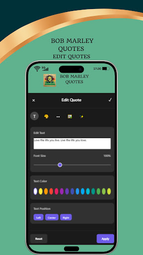 Bob Marley Quotes is on the top of the list of Lifestyle category apps on Google Playstore. It has got really good rating points and reviews. Currently, Bob Marley Quotes for Windows has got over 100+ App installations and 0 star average user aggregate rating points.