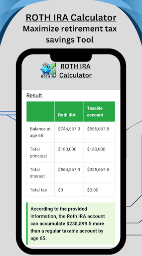 Roth IRA Calculator is on the top of the list of Finance category apps on Google Playstore. It has got really good rating points and reviews. Currently, Roth IRA Calculator for Windows has got over 100+ App installations and 0 star average user aggregate rating points.