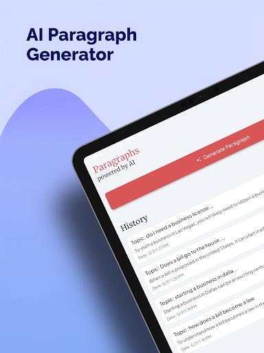 AI Paragraph Generator is on the top of the list of Business category apps on Google Playstore. It has got really good rating points and reviews. Currently, AI Paragraph Generator for Windows has got over 50+ App installations and 0 star average user aggregate rating points.