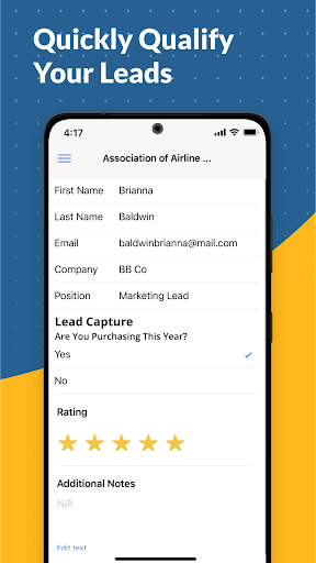 Lead Capture by EventMobi is on the top of the list of Business category apps on Google Playstore. It has got really good rating points and reviews. Currently, Lead Capture by EventMobi for Windows has got over 1,000+ App installations and 0 star average user aggregate rating points.