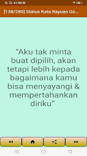 Status Kata Rayuan Gombal is on the top of the list of Entertainment category apps on Google Playstore. It has got really good rating points and reviews. Currently, Status Kata Rayuan Gombal for Windows has got over 500+ App installations and 0 star average user aggregate rating points.