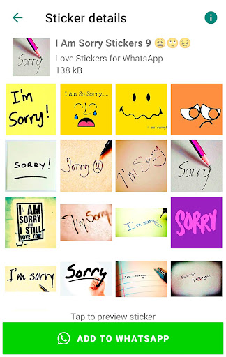 Sorry And Apology Stickers is on the top of the list of Communication category apps on Google Playstore. It has got really good rating points and reviews. Currently, Sorry And Apology Stickers for Windows has got over 500+ App installations and 0 star average user aggregate rating points.