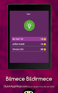 Bilmece Bildirmece - Kelime Bulmaca - Full Eğlence is on the top of the list of Trivia category apps on Google Playstore. It has got really good rating points and reviews. Currently, Bilmece Bildirmece - Kelime Bulmaca - Full Eğlence for Windows has got over Game installations and 0 star average user aggregate rating points.