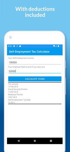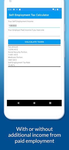 Self-Employment Tax Calculator is on the top of the list of Productivity category apps on Google Playstore. It has got really good rating points and reviews. Currently, Self-Employment Tax Calculator for Windows has got over 100+ App installations and 0 star average user aggregate rating points.