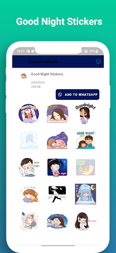 Good Night WAStickersApp is on the top of the list of Communication category apps on Google Playstore. It has got really good rating points and reviews. Currently, Good Night WAStickersApp for Windows has got over 50+ App installations and 0 star average user aggregate rating points.