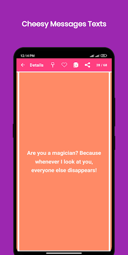 Flirty Messages - Pickup Lines is on the top of the list of Entertainment category apps on Google Playstore. It has got really good rating points and reviews. Currently, Flirty Messages - Pickup Lines for Windows has got over 100+ App installations and 0 star average user aggregate rating points.