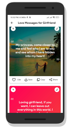 Love Messages for Girlfriend is on the top of the list of Entertainment category apps on Google Playstore. It has got really good rating points and reviews. Currently, Love Messages for Girlfriend for Windows has got over 50+ App installations and 0 star average user aggregate rating points.