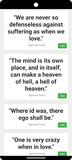 Sigmund Freud Quotes is on the top of the list of Productivity category apps on Google Playstore. It has got really good rating points and reviews. Currently, Sigmund Freud Quotes for Windows has got over 500+ App installations and 0 star average user aggregate rating points.