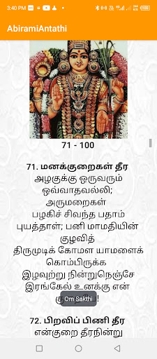 Abirami Anthathi is on the top of the list of Books & Reference category apps on Google Playstore. It has got really good rating points and reviews. Currently, Abirami Anthathi for Windows has got over 1,000+ App installations and 0 star average user aggregate rating points.