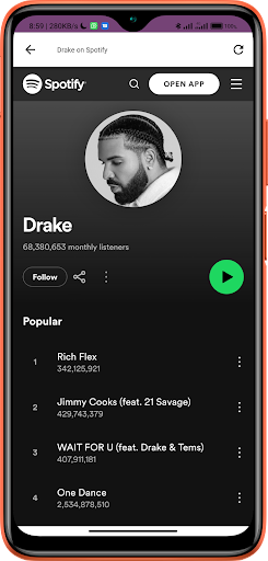 Drake mp3 Songs is on the top of the list of Entertainment category apps on Google Playstore. It has got really good rating points and reviews. Currently, Drake mp3 Songs for Windows has got over 500+ App installations and 0 star average user aggregate rating points.