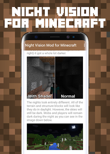 Night Vision Mod for Minecraft is on the top of the list of Entertainment category apps on Google Playstore. It has got really good rating points and reviews. Currently, Night Vision Mod for Minecraft for Windows has got over 10,000+ App installations and 3.4 star average user aggregate rating points.