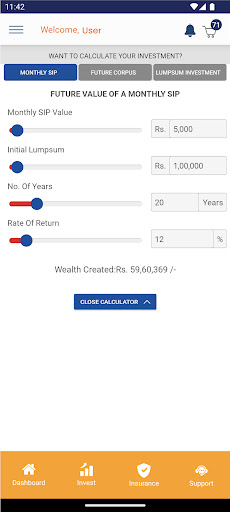 App for mutual funds investments, that lets you easily do systematic investments (SIP) or one-time investments to build long-term wealth, save taxes, retirement planning, and other goals like education and marriage of children. All mutual funds schemes are available. The app also allows easy redemption / sell of your mutual funds investments, in case you need money for any emergency.