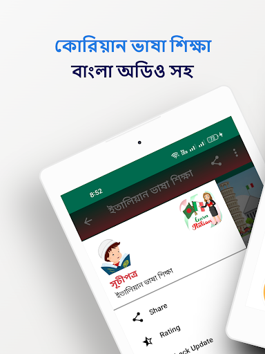 Learn Italian - ইতালিয়ান ভাষা is on the top of the list of Education category apps on Google Playstore. It has got really good rating points and reviews. Currently, Learn Italian - ইতালিয়ান ভাষা for Windows has got over 10,000+ App installations and 0 star average user aggregate rating points.