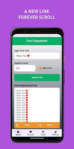 Text Repeater is on the top of the list of Tools category apps on Google Playstore. It has got really good rating points and reviews. Currently, Text Repeater for Windows has got over 1,000+ App installations and 0 star average user aggregate rating points.