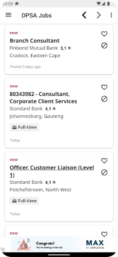 DPSA Vacancies & All SA Jobs is on the top of the list of Finance category apps on Google Playstore. It has got really good rating points and reviews. Currently, DPSA Vacancies & All SA Jobs for Windows has got over 500+ App installations and 0 star average user aggregate rating points.
