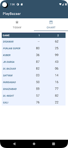 PlayBazaar - Result Chart is on the top of the list of Tools category apps on Google Playstore. It has got really good rating points and reviews. Currently, PlayBazaar - Result Chart for Windows has got over 500+ App installations and 0 star average user aggregate rating points.