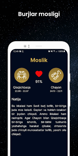 Munajjimlar bashorati is on the top of the list of Events category apps on Google Playstore. It has got really good rating points and reviews. Currently, Munajjimlar bashorati for Windows has got over 10,000+ App installations and 0 star average user aggregate rating points.