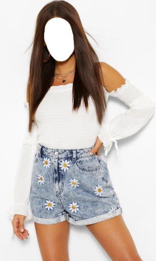 Women Denim Shorts Photo Suit Download for PC Windows 10/8/7 Laptop:
