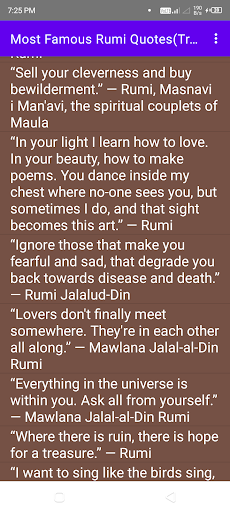 Rumi Quotes Offline-Motivation is on the top of the list of Education category apps on Google Playstore. It has got really good rating points and reviews. Currently, Rumi Quotes Offline-Motivation for Windows has got over 50+ App installations and 0 star average user aggregate rating points.