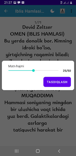 Iblis Hamlasi 1-Kitob is on the top of the list of Books & Reference category apps on Google Playstore. It has got really good rating points and reviews. Currently, Iblis Hamlasi 1-Kitob for Windows has got over 5,000+ App installations and 0 star average user aggregate rating points.