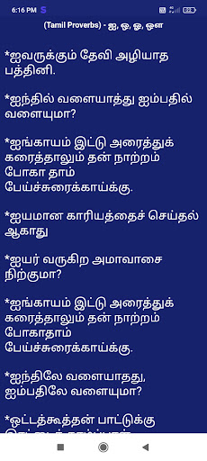 Tamil Proverbs and Meanings is on the top of the list of Education category apps on Google Playstore. It has got really good rating points and reviews. Currently, Tamil Proverbs and Meanings for Windows has got over 500+ App installations and 0 star average user aggregate rating points.