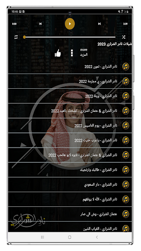 نادر الشراري 2022 بدون نت is on the top of the list of Music & Audio category apps on Google Playstore. It has got really good rating points and reviews. Currently, نادر الشراري 2022 بدون نت for Windows has got over 50,000+ App installations and 3.7 star average user aggregate rating points.