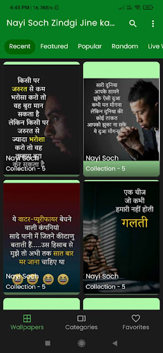 Nayi Soch Motivational Quotes is on the top of the list of Entertainment category apps on Google Playstore. It has got really good rating points and reviews. Currently, Nayi Soch Motivational Quotes for Windows has got over 100+ App installations and 0 star average user aggregate rating points.