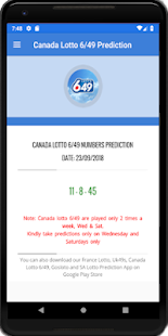 Canada Lotto 6/49 Prediction is on the top of the list of Sports category apps on Google Playstore. It has got really good rating points and reviews. Currently, Canada Lotto 6/49 Prediction for Windows has got over App installations and 0 star average user aggregate rating points.