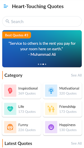 Heart-Touching Quotes is on the top of the list of Entertainment category apps on Google Playstore. It has got really good rating points and reviews. Currently, Heart-Touching Quotes for Windows has got over 100+ App installations and 0 star average user aggregate rating points.