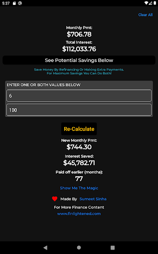 Loan Payoff Calculator is on the top of the list of Finance category apps on Google Playstore. It has got really good rating points and reviews. Currently, Loan Payoff Calculator for Windows has got over 100+ App installations and 0 star average user aggregate rating points.