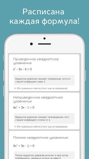 Формулы по алгебре с тестом is on the top of the list of Education category apps on Google Playstore. It has got really good rating points and reviews. Currently, Формулы по алгебре с тестом for Windows has got over 10,000+ App installations and 0 star average user aggregate rating points.