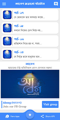 আবেগি কষ্টের স্ট্যাটস পোস্ট has got enormous popularity with it’s simple yet effective interface. We have listed down two of the best methods to Install আবেগি কষ্টের স্ট্যাটস পোস্ট on PC Windows laptop. Both the mentioned emulators are popular to use Apps on PC. You can follow any of these methods to get আবেগি কষ্টের স্ট্যাটস পোস্ট for Windows 10 PC.