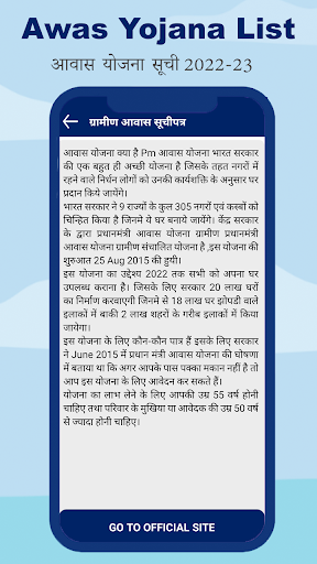 Awas Yojana List - आवास योजना is on the top of the list of House & Home category apps on Google Playstore. It has got really good rating points and reviews. Currently, Awas Yojana List - आवास योजना for Windows has got over 10+ App installations and 0 star average user aggregate rating points.