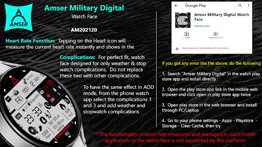 We are always ready to guide you to run Amser Military Digi Watch Face on your pc, if you encounter an error, please enter the information below to send notifications and wait for the earliest response from us.